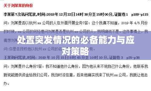 在日常工作和生活中,我们可能会遇到各种预料之外的突发情况,它们可能源于自然因素、人为因素或社会因素,如何有效处置突发情况,不仅关乎个人安全,也关乎社会稳定,本文将探讨处置突发情况的关键能力及其应对策略。