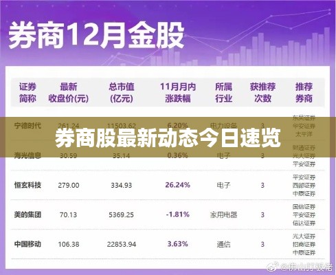 随着金融市场的日益繁荣,券商股作为资本市场的重要组成部分,其动态一直备受关注,本文将围绕“券商股最新消息今日”这一主题,对券商股的最新消息、市场动态、行业趋势及可能影响投资者决策的因素进行概述。