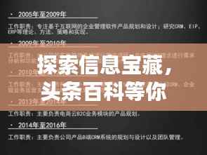 在信息海洋中,我们永远都有学不完的知识,百度一下头条百科,就像是一把钥匙,帮助我们打开信息的大门,无论是想了解最新的新闻动态,还是探索古老的历史文化,我们都能在这里找到答案。
