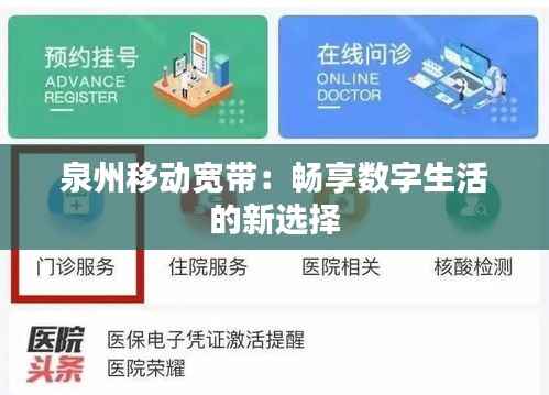 在这个数字化时代,选择一款合适的宽带套餐,不仅能提升我们的生活品质,还能为我们的工作和学习带来更多便利。泉州移动宽带以其多样化的资费选择、优质的服务和丰富的优惠活动,无疑成为了泉州地区用户的最佳选择。无论您是家庭用户、商务人士还是学生群体,泉州移动宽带都能为您提供量身定制的网络解决方案。赶快行动起来,选择泉州移动宽带,开启您的智慧生活吧!