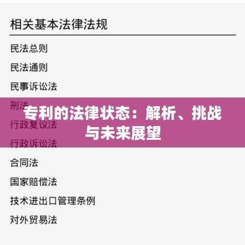 <h1>专利的法律状态:解析、挑战与未来展望</h1>