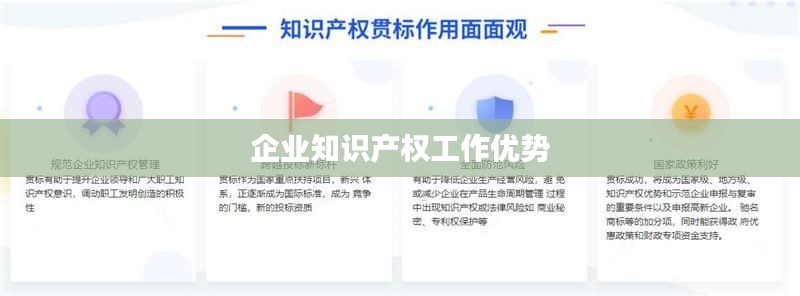 总之,企业知识产权工作具有诸多优势,对于提升企业核心竞争力、降低经营风险、提高经济效益、促进国际合作等方面具有重要意义。因此,企业应高度重视知识产权工作,积极采取措施保护和运用知识产权,为企业发展奠定坚实基础。